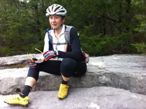 Wednesday’s ride was a short one. I had a momentary lapse of judgment and suggested that we take the Blue trail down to the highway. I remembered about halfway down that the 6 inches of rain we’d received in the previous two days had backed up into the White River and surrounding creeks- including Livingston Creek, which the trail crosses three separate times.