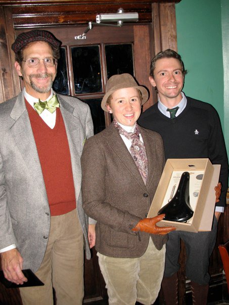 The ride and the company were great, of course. I managed to win “best dressed,” the prize for which was a shiny new Brooks saddle. If I can scare up a seatpost with more setback than my Thompson (not too hard- the Thompson is pretty mild), then it’s going on the One9.